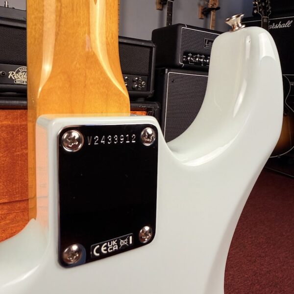 Outras características autênticas incluem um escudo branco de três camadas com 11 furos, o logotipo de transição incrivelmente bacana com letras maiores e um conjunto de incríveis captadores Pure Vintage 1965 “Gray-Bottom”