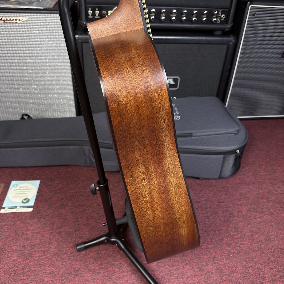 Possui escala e ponte Richlite certificadas pelo FSC, corpo com acabamento acetinado e acabamento de braço esfregado à mão.